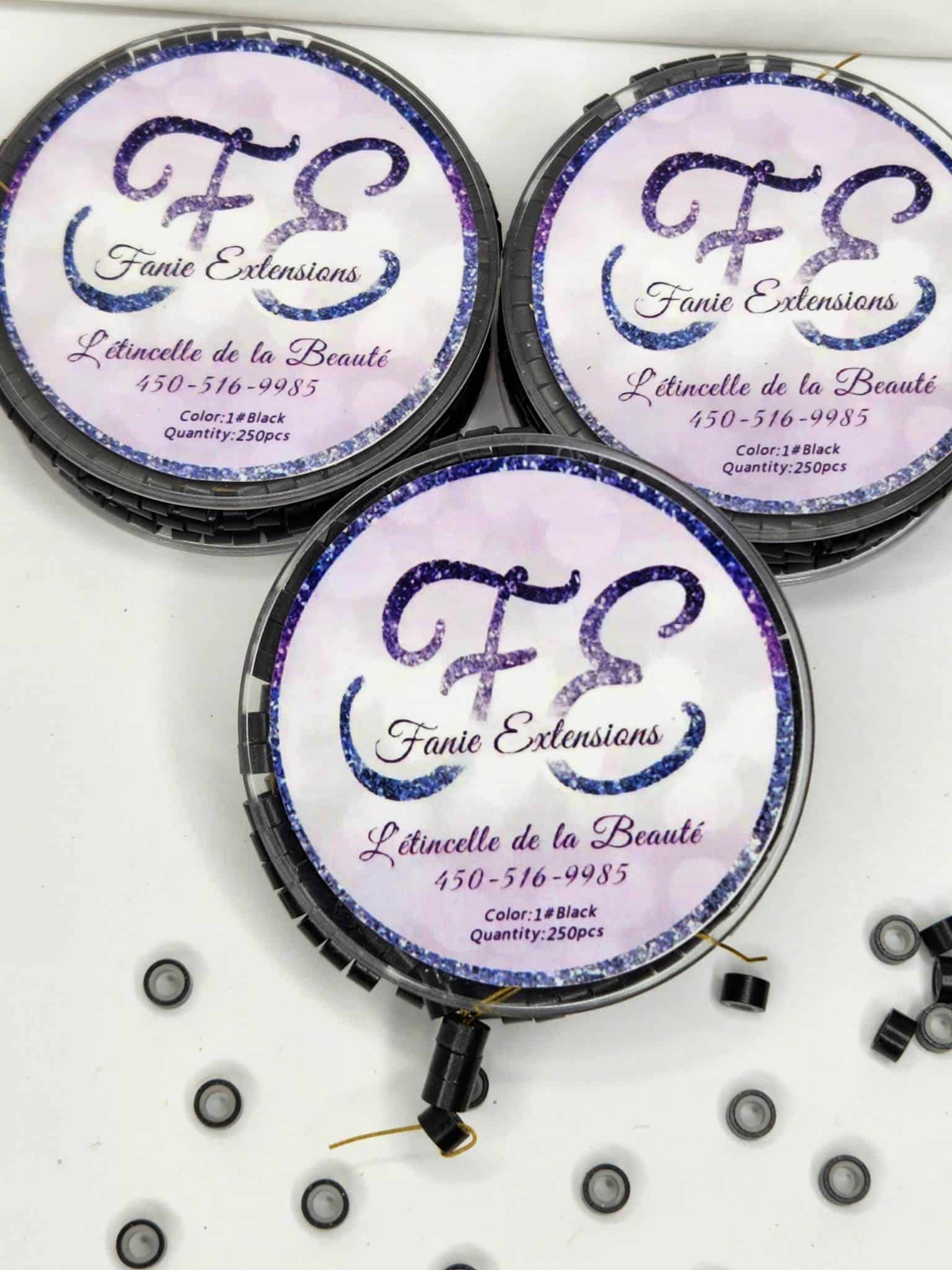 Nos roulettes de 250 ou 1000 micro-anneaux vont vous simplifier le travail! Suffis d’entrer votre enfileur pour le remplir en moins de 2 secondes!